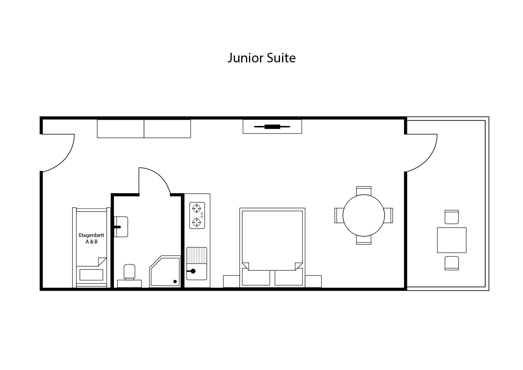 Unsere Junior Suite – Meerblick bietet Ihnen 38 qm mit einem atemberaubenden Blick auf das Meer. Diese stilvolle Suite ist für bis zu 4 Personen geeignet und verfügt über ein luxuriöses Kingsize-Bett sowie eine gemütliche Schlafnische mit Etagenbett. Der perfekte Rückzugsort für romantische Paare oder kleine Familien, die einen erholsamen Aufenthalt in einer Meerblick-Unterkunft suchen.